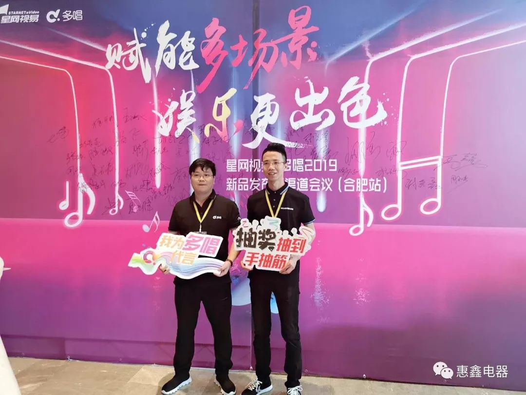 2019年6月12日,继惠鑫5月11日郑州站、5月15日武汉站“惠鑫HUIXIN联合产品发布会暨渠道会议—合肥站”圆满举行。现场,安徽地区的200多位行业精英,共同见证了惠鑫全系列多尺寸电视及多唱全系列新品的震撼亮相,并从全新视角,就安徽娱乐行业的下一个风口、安徽地区的消费特色,以及娱乐产品发展的新趋势等方面,展开了深度的交流与讨论。